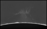 - Aux alentours de 7h, remarquer le fin croissant de Lune, le dernier visible à l’oeil nu : de 7,5%, 54,5 heures avant la Nouvelle Lune, à 6° de hauteur et 105° d’azimut environ pour notre localisation, le Soleil étant à 5° sous l’horizon ; lever de la Lune à 6h19 pour notre localisation à l’ azimut 98°.