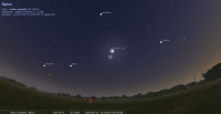 – Son éclat augmente, magnitude +0.9 à +0.2. Il faut toutefois des jumelles pour bien la distinguer au raz de l’horizon.