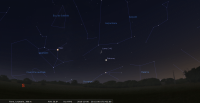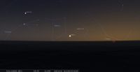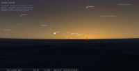 – A 4h37, la Lune est conjointe à Pluton dans le plan équatorial, Δ +3°12’ ; élongation solaire de Pluton 89° Est.