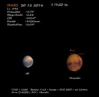 – En géocentrique elle a atteint un maximum le 16 mai 2016 (+1°49’) et va atteindre son minimum le 13 janvier (+1°16’).