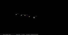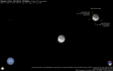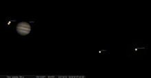 - Aux alentours de 0h, remarquez avec un instrument Io et Europe en paire serrées près de Jupiter, puis leur transit simultané à partir de 1h31.