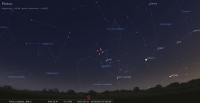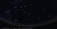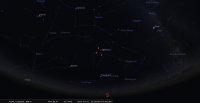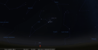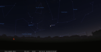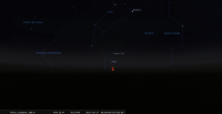 - A 12h04, la Lune est conjointe à Mars dans le plan équatorial, la planète 1°47’ au Sud ; élongation solaire de Mars 28° Ouest. A apprécier au petit matin de ce jour : à 6h, les deux astres viennent juste de se lever, la Lune en tête, et ils se trouvent pile à l’est.