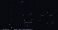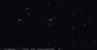 – magnitude 14.2 ; diamètre apparent 0,13" (1,3 dixième de secondes d’arc). Elle est encore dans le ciel en début de nuit.