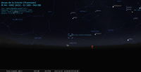 – En déclinaison Sud du 17 octobre au 9 mars ; elle sortira légèrement des limites zodiacales (23°26’) du 21 décembre au 4 janvier et atteindra son minimum le 28 décembre (-23°42’).
