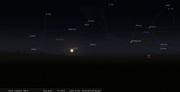 – magnitude 14.2 ; diamètre apparent 0,13" (1,3 dixième de secondes d’arc). Elle se couche aux alentours de 19h15.