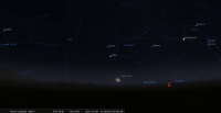 – A 17h30, la Lune arrive devant la constellation du Cancer (Cnc) ; longitude 117°28’ (28e CAN) ; latitude -1°41’, monte.
