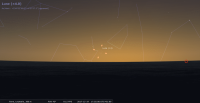 – A 4h25, la Lune est conjointe à Pluton dans le plan équatorial, Δ +1°53’ ; élongation solaire de Pluton 20° Est.