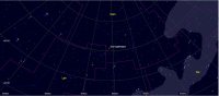 – En déclinaison Sud du 17 octobre au 9 mars ; elle sort des limites zodiacales (23°26’12") le 21 décembre à 19h23 ; elle atteindra son minimum le 28 décembre (-23°42’) et rentrera dans les limites zodiacales le 4 janvier .