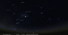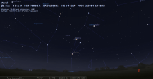 - Le 6 février, elle se trouve à près de 2° de l’amas globulaire Messier 80 ; à voir avec un instrument.