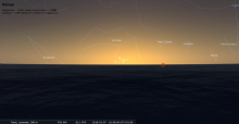 – Il se produit une occultation de Regulus (magnitude +1.3) par la Lune gibbeuse décroissante pour le Nord de l’Europe, la Sibérie et le Japon (sauf sud).