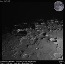 - Période de libration minimale en latitude (B= -6,8°). Elle présente son Sud au maximum ; aujourd’hui et demain nous pouvons assister au coucher du Soleil sur la mer des Pluies (Mare Imbrium).