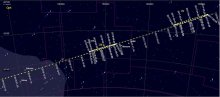 devant la constellation du Capricorne (Cap) du 20 janvier au 16 février. Il arrivera alors devant le Verseau (Aqr).