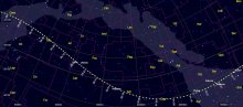 – En déclinaison Sud du 9 septembre 2010 au 26 mars 2026, elle a atteint un minimum le 29 décembre (-22°32’). Prochain maximum le 19 avril (-22°14’) ; elle atteindra son minimum absolu en octobre 2018 (-22°46’).