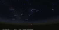A 1h52, la Lune arrive devant la constellation de la Balance (Lib) ; longitude 216°14’ (7e SCO), latitude +5°9’, monte.