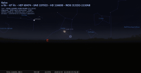 - A 22h45, la Lune est conjointe à Spica dans le plan équatorial, l’étoile (alpha Virgo) 7°22’ au Sud. A cette heure, les deux astres viennent de se lever dans notre ciel ; ils culminent aux alentours de 3h30.