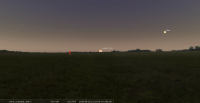 - A 16h18, la Lune est conjointe à Mars dans le plan écliptique, la planète 6°45’ au Sud ; longitude 298°42’ (29e CAP). Les deux astres culminent aux alentours de 0h ; Mars se couche peu avant 4h, suivie par la Lune, une cinquantaine de minutes plus tard.