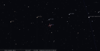 – Devant la constellation du Bélier (Ari) depuis le 27 avril dernier ; elle va y rester jusqu’au 23 mai 2024, mais fera un retour devant les Poissons du 3 décembre au 6 février prochains lors de sa prochaine rétrogradation.