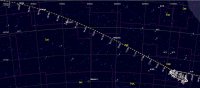 – Ci-contre, sa position devant les constellations (référentiel équatorial) à notre époque, jour après jour du 1er juillet, 14h (10e CAN) au 22 décembre, 13h (1er CAP) (les planètes sont positionnées au 1er juillet). Rappelons que la précession des équinoxes décale sa position devant les étoiles d’un degré tous les 70 ans.