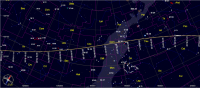 – (1) Cérès, m 8.6, qui se trouve devant Ophiuchus (Oph) le 26 février à 15h24 dans le plan écliptique (10e SAG) la planète naine 2°25’ au Nord.