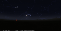 Le 21 au soir, il faut attendre une bonne quarantaine de minutes après le coucher du Soleil pour la voir apparaître, un peu plus vers le Nord que la veille.