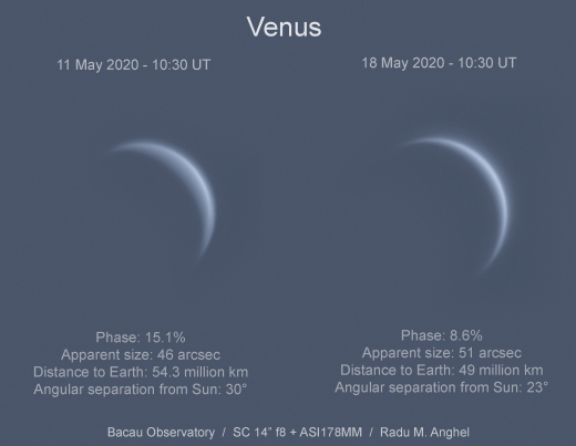 et au plus près de la Terre le 3 mai, à 1,1 UA soit 165,4 millions de kilomètres environ