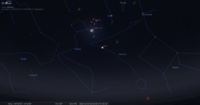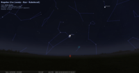 Le 1er octobre au soir, il faut attendre près d’un quart d’heure après le coucher du Soleil avant de la voir apparaître à l’Est-sud-est.